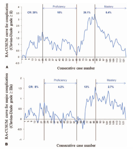Tracking of operation times and complication rates in robotic gastrectomy as the surgeons' experience grows.